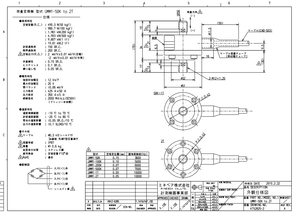 UMM1-2T-20M傳感器 日本NMB UMM1-2T-20M稱重傳感器所有量程型號: |