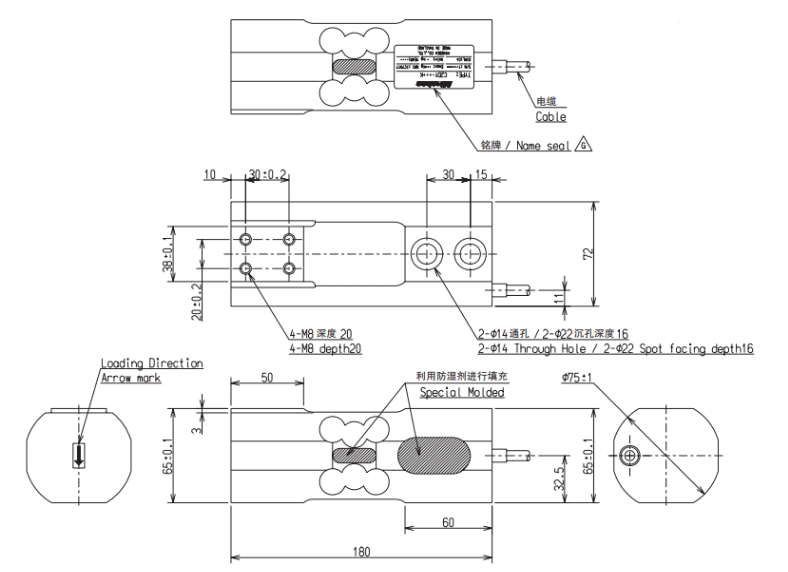 pt4廣州南創(chuàng)電子科技有限公司U2D1-100K稱重傳感器Minebea尺寸圖:pt4廣州南創(chuàng)電子科技有限公司