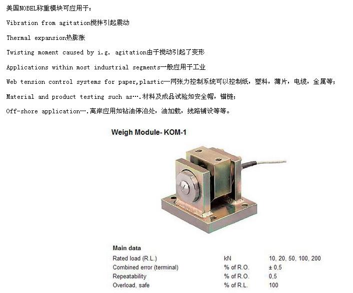 產(chǎn)品名稱:Vishay Nobel稱重傳感器KOM-1-100KN
