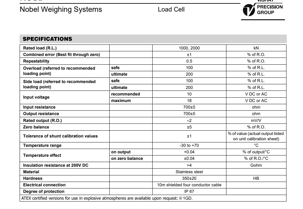美國威世諾貝爾Vishay Nobel稱重模塊