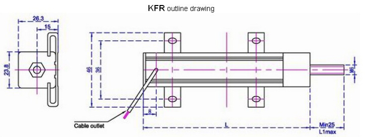 德國VOLFA KFR線性位置傳感器規(guī)格大小參考圖: