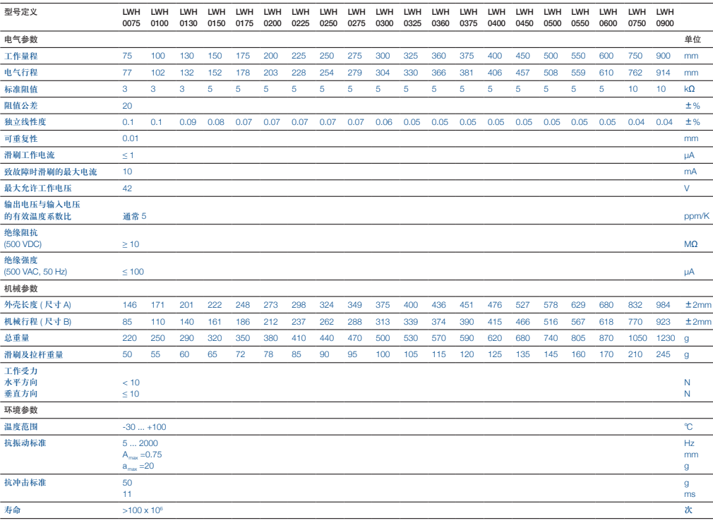 德國NOVOTECHNIK位移傳感器LWH-0650產(chǎn)品技術(shù)參數(shù):