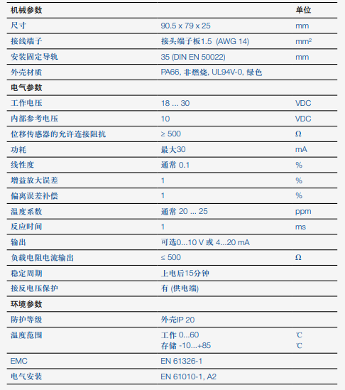Nib廣州南創(chuàng)電子科技有限公司德國(guó)諾沃泰克novotechnikMUP110-1 MUP110-4信號(hào)轉(zhuǎn)換器相關(guān)內(nèi)容拓展閱讀:Nib廣州南創(chuàng)電子科技有限公司德國(guó)NOVO MUP110-1 MUP110-4信號(hào)轉(zhuǎn)換器,德國(guó)諾沃泰克novotechnik信號(hào)轉(zhuǎn)換器MUP110-1具有優(yōu)良的線性度、諾沃泰克novotechnik變送器MUP110-1極低的溫漂及與電位計(jì)相匹配的信號(hào)處理方式保證了位移傳感器在使用過程中具有杰出表現(xiàn)。諾沃泰克MUP110-4變送器近距離與電位器連接,即便在信號(hào)傳遞很遠(yuǎn)的工況下,也能保證信號(hào)的可靠性和抗干擾性。該產(chǎn)品電路被封裝在一個(gè)絕緣塑料機(jī)殼內(nèi),MUP110-4信號(hào)轉(zhuǎn)換器機(jī)殼可以固定在標(biāo)準(zhǔn)的 EN 50222 安裝軌道上。該信號(hào)轉(zhuǎn)換器具有很寬的電壓適應(yīng)范圍,可直接使用未經(jīng)穩(wěn)壓的直流電源。諾沃泰克信號(hào)轉(zhuǎn)換器MUP110-4是指將一種信號(hào)轉(zhuǎn)換成另一種信號(hào)的裝置,這樣可以使得具有不同輸入、輸出的儀表設(shè)備可以聯(lián)用。MUP110-1變送器NOVOTECHNIK可以與各類傳感器配合使用,將速度、流量、重量等信號(hào)轉(zhuǎn)換成標(biāo)準(zhǔn)的4-20mA信號(hào)或通訊信號(hào),傳達(dá)給PLC、計(jì)算機(jī)等設(shè)備使用。