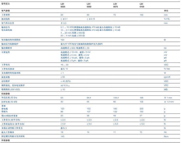 Novotechnik LS1系列位移傳感器主要特點(diǎn):