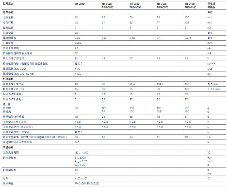 德國(guó)Novotechnik TR系列直線位移傳感器描述: