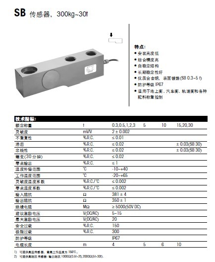 瑞士METTLER TOLEDO SB-500kg稱(chēng)重傳感器技術(shù)參數(shù)圖: