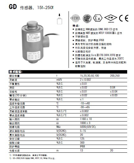 瑞士METTLER TOLEDO GD-30t稱重傳感器技術(shù)參數(shù)圖: