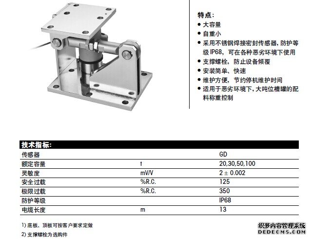 GW-100kg稱(chēng)重模塊采用精美不銹鋼焊接密封梅特勒托利多MTB系列稱(chēng)重傳感器,防護(hù)等級(jí)達(dá)到IP68,能夠在任何的惡劣環(huán)境下使用工作,它安裝簡(jiǎn)單快速,球形連接件始終保持著模塊的垂直稱(chēng)重狀態(tài),防止設(shè)備傾覆,支撐螺栓,維護(hù)方便,節(jié)約停機(jī)維護(hù)時(shí)間,防爆GW不銹鋼稱(chēng)重模塊適用于醫(yī)藥、食品、化工等行業(yè)的中小容量反應(yīng)釜的配料稱(chēng)重控制。