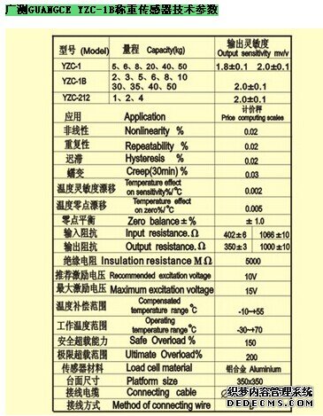 廣測GUANGCEYZC-1B稱重傳感器所有型號: