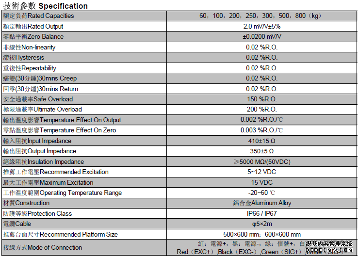 額定負(fù)荷:60,100,200,250,300,500,800(kg)