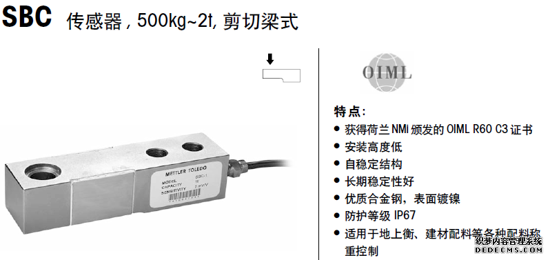 英文名稱:mettler toledo稱重傳感器SBC-1t