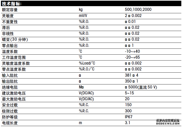 il-500kg 單點(diǎn)式鋼質(zhì)傳感器,容量500kg,2.5m電纜