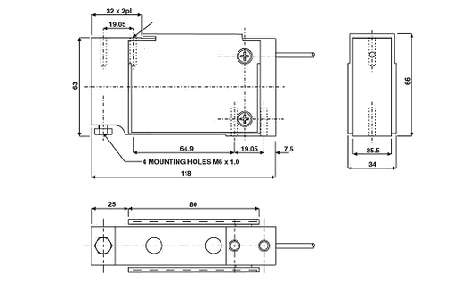 美國(guó)特迪亞tedea 1010稱重傳感器產(chǎn)品尺寸圖:cE0廣州南創(chuàng)電子科技有限公司