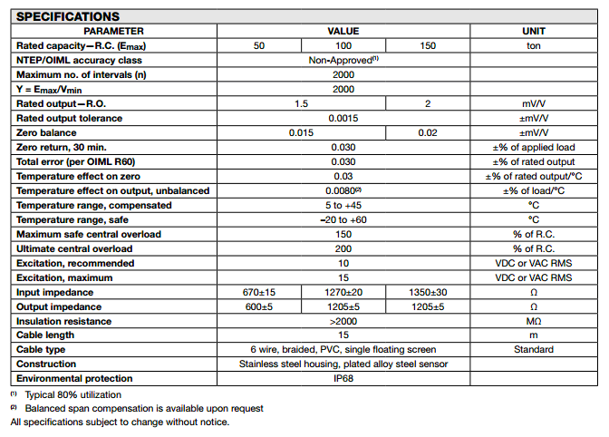 美國特迪亞Tedea稱重傳感器122-100T參數(shù):sjL廣州南創(chuàng)電子科技有限公司
