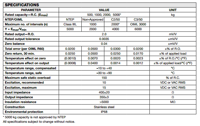 美國特迪亞tedea 620稱重傳感器系列所有量程如下:Otu廣州南創(chuàng)電子科技有限公司