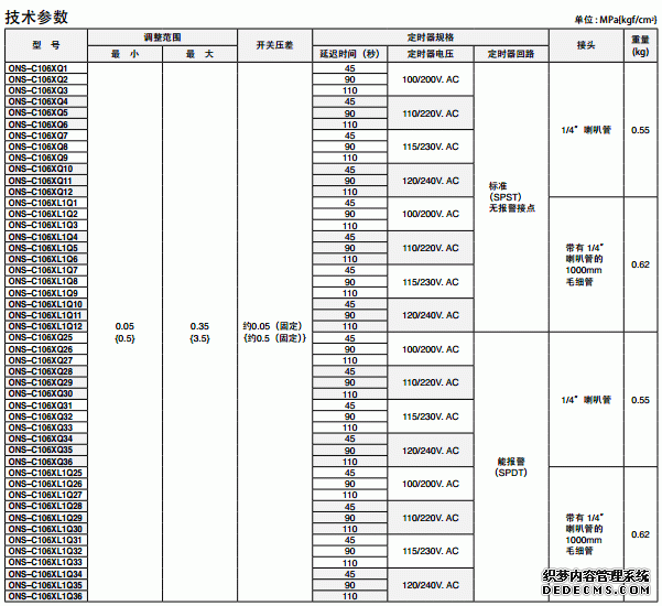 日本鷺宮ONS型油壓保護用壓差控制器部分型號如下:skD廣州南創(chuàng)電子科技有限公司