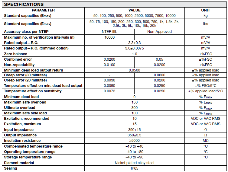 LUz廣州南創(chuàng)電子科技有限公司21606: 5223-B10-65 K-40P1 65,000 lb 40ft RTI 3mV/V 700 OHM WW NTEP IIIL 10 M FM WS IP67
