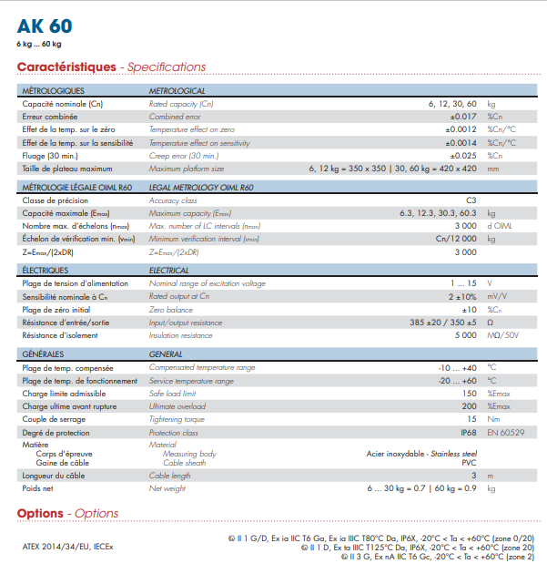 法國Scaime 稱重傳感器AK系列其他型號: