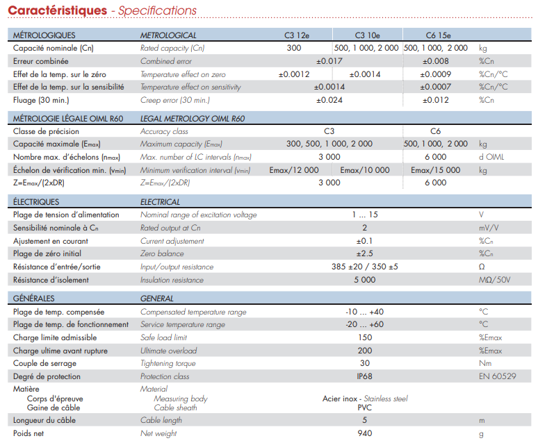 法國世感Scaime稱重傳感器產(chǎn)品參數(shù)圖:gqC廣州南創(chuàng)電子科技有限公司