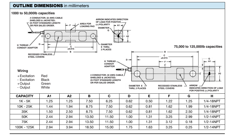 稱重傳感器:65016-1Klbs,65016-1.5Klbs,65016-2.5Klbs,65016-5Klbs,65016-10Klbs,65016-15Klbs,65016-25Klbs,65016-35Klb,65016-50Klbs,65016-75Klbs,65016-100Klbs,65016-125Klbs