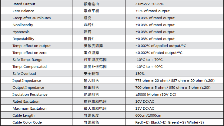 美國Transcell DBSL系列稱重傳感器所有量程如下: 13c廣州南創(chuàng)電子科技有限公司