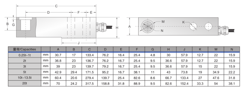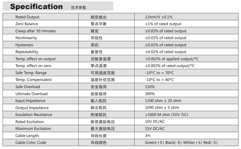 OQu廣州南創(chuàng)電子科技有限公司美國傳力Transcell稱重傳感器SBSZ-250kg技術(shù)參數(shù)圖:OQu廣州南創(chuàng)電子科技有限公司