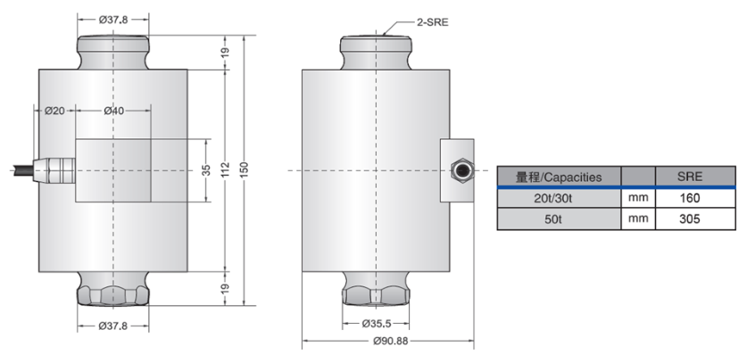 xUJ廣州南創(chuàng)電子科技有限公司美國傳力CD-5t稱重傳感器產(chǎn)品尺寸圖:xUJ廣州南創(chuàng)電子科技有限公司