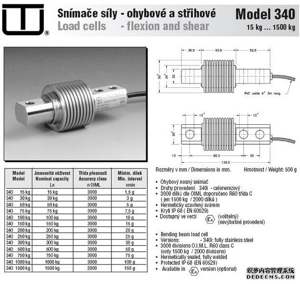 xEw廣州南創(chuàng)電子科技有限公司西班牙尤梯爾稱重傳感器MOD340-50kg技術(shù)參數(shù):