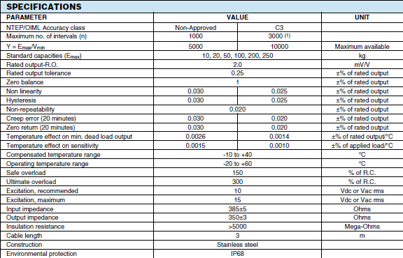 美國世銓Celtron HBB系列稱重傳感器所有量程如下: wEX廣州南創(chuàng)電子科技有限公司