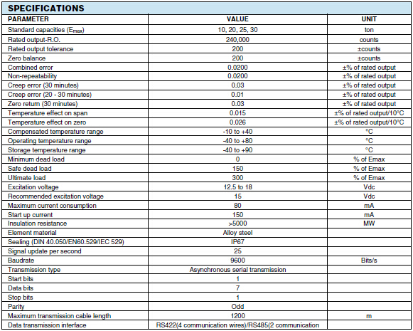 Celtron  MDBD-30T稱重傳感器是一種梁式稱重傳感器,負載能力高,鋼制材料,無電鍍鍍鎳合金,防護等級IP68,OIML C3認證,可選密封性,可選FM相關(guān)認證。Celtron MDBD-30T稱重傳感器應(yīng)用于:車輛/鐵路稱重用,筒倉、漏斗、箱灌、叉車秤 BNH廣州南創(chuàng)電子科技有限公司