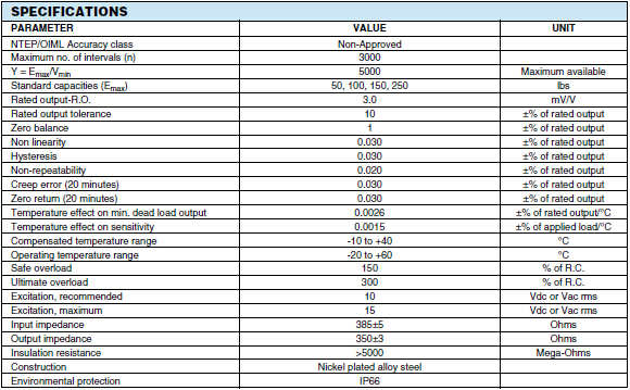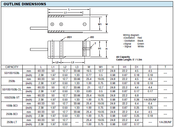 美國(guó)世銓Celtron MBB系列稱重傳感器所有量程如下:Klm廣州南創(chuàng)電子科技有限公司