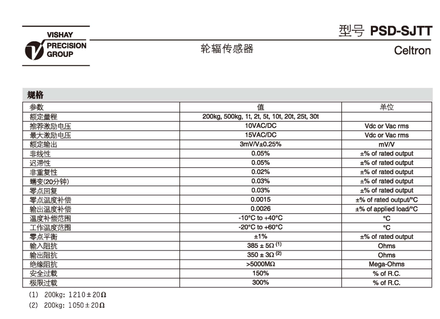vishay celtron PSD-200kgSJTT稱重傳感器型號(hào)類別技術(shù)參數(shù)選型安裝等資料信息,如果有關(guān)