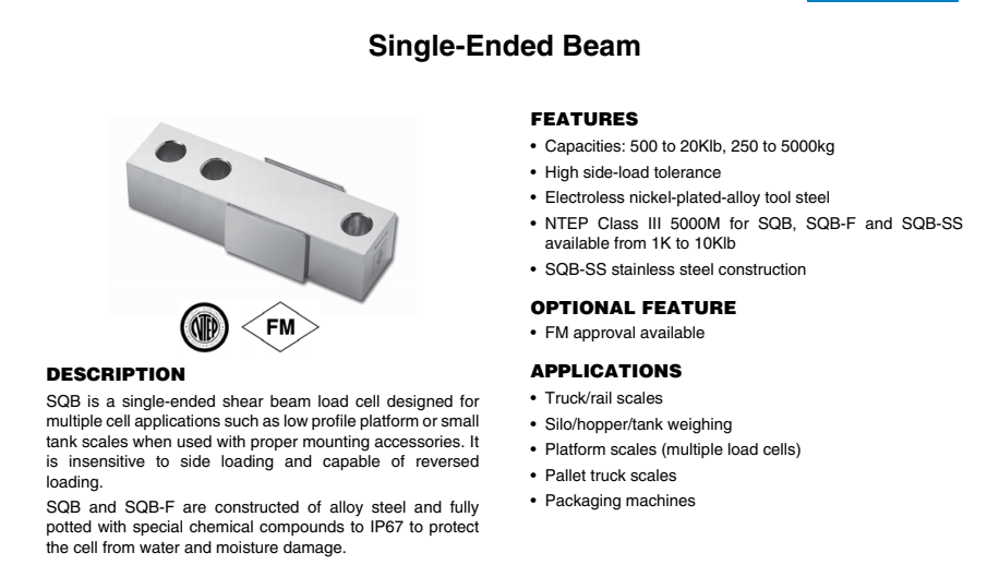 Nxg廣州南創(chuàng)電子科技有限公司美國(guó)vishay celtron SQB-1.1t稱重傳感器特點(diǎn):Nxg廣州南創(chuàng)電子科技有限公司單剪切梁稱重傳感器
