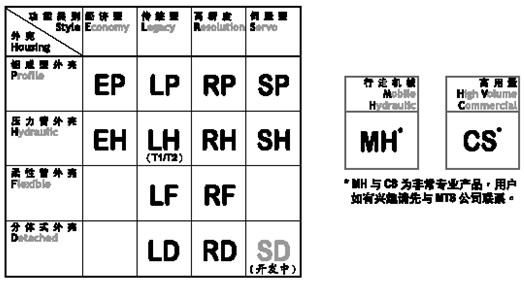 MTS位移傳感器型號(hào)對(duì)照表 MTS已成功開發(fā)三代傳感器,第三代基本分為4個(gè)系列,即價(jià)格相宜的經(jīng)濟(jì)型E系列,取代傳統(tǒng)T1和T2型的L系列,為滿足高性能和高精度要求的R系列(曾定名為T3系列)和把伺服控制器加進(jìn)傳感器的S系列,而這4個(gè)系列又同時(shí)為用戶提供不同類型的外殼設(shè)計(jì)以符合不同場(chǎng)合的應(yīng)用,同樣分為4類,即以雞鴨成型鋁外殼的P型,能承受高壓力的不銹鋼外管的H型,外管柔軟的F型和把電子頭與測(cè)桿分體的D型。 以下是簡(jiǎn)單的產(chǎn)品型號(hào)對(duì)照表,供用戶參考: ![]() |