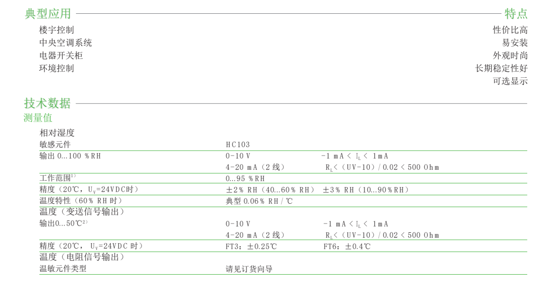 奧地利E+E全系列溫濕度傳感器, 暖通空調(diào)用室內(nèi)溫濕度變送器 , 系列溫濕度變送器專為暖通空調(diào)領(lǐng)域溫濕度測(cè)量而設(shè)計(jì),適用于商業(yè)樓宇和常規(guī)建筑的BA系統(tǒng)。變送器采用 E+E高品質(zhì)的 HC103 濕敏元件,測(cè)量精度高。變送器外型設(shè)計(jì)美觀,安裝簡(jiǎn)便。濕度輸出信號(hào)為標(biāo)準(zhǔn)4-20mA或0-10VDC信號(hào),溫度輸出可選擇4-20mA或0-10VDC的標(biāo)準(zhǔn)信號(hào)或電阻輸出信號(hào)。系列有兩晶顯示模塊用以現(xiàn)場(chǎng)的溫濕度顯示。種外型設(shè)計(jì)以滿足不同地區(qū)標(biāo)準(zhǔn),且所有產(chǎn)品都可以配置清晰的液25.7。