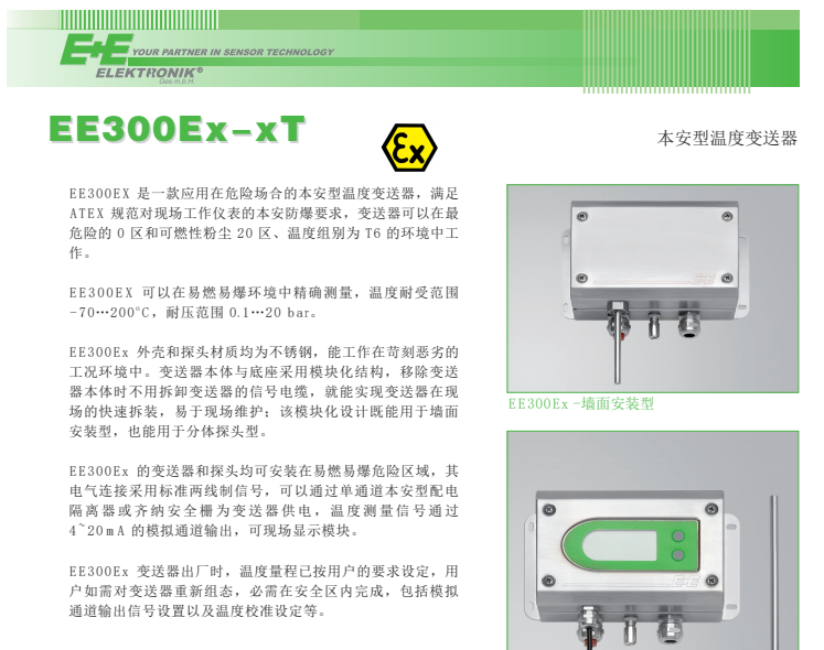 產(chǎn)品英文名稱:奧地利E+E ee300EX溫濕度傳感器、 ee300EX溫濕度變送器