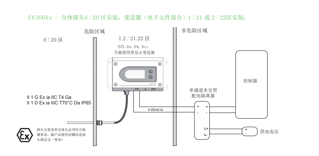 ee300EX溫濕度顯示器探頭均可安裝在易燃易爆危險區(qū)域其電氣連接采用標準兩線制信號,可以通過雙通道本安型配電隔離器或齊納安全柵為變送器供電,測量信號通過兩路4~20mA的模擬通道輸出。除了輸出相對濕度和溫度信號。測重全氣中的度,3x也能用測分,可以m相[aw]輸出。典型應(yīng)用包括:海上石油鉆井平臺的油品劣化測量,以及變壓器油、潤滑油、液壓油的在線監(jiān)測。