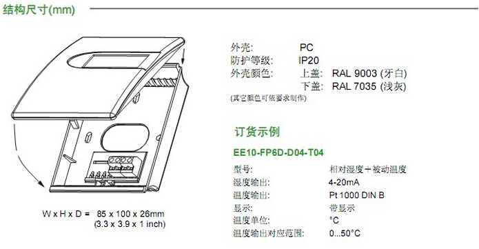 奧地利E+E EE10溫濕度變送器參數(shù)圖: