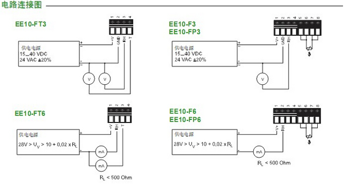 奧地利E+E EE10溫濕度變送器尺寸結(jié)構(gòu)、電路連接參考圖: