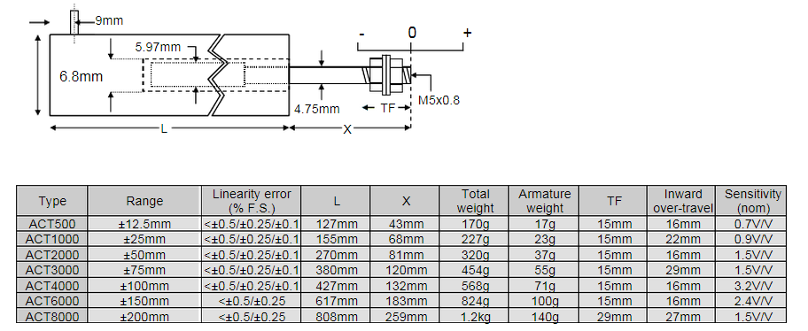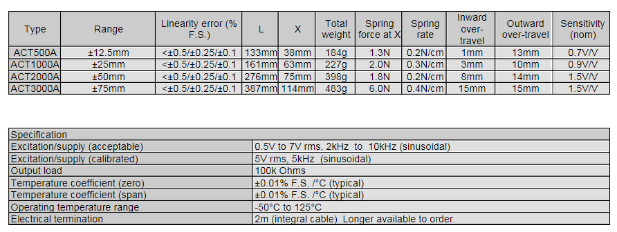 英國(guó)RDP GT5000RA位移傳感器系列位移傳感器所有量程如下: